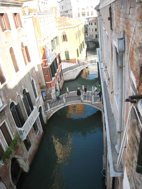 The Hotel Centauro lacked an elevator and we were on the third floor; however that small negative did not prevent us from enjoying our stay. The hotel turned out to be a very good choice. The Centauro Hotel is tucked away down a very narrow alley near Campo Manin in the San Marcos district, not far from the Grand Canal and the Rialto Bridge. We found the hotel to be an excellent location, and most attractions around Venice are within walking distance. A smaller canal is adjacent to the hotel and our room was above it on the third floor. Being near the canal gave us music and singing from the passing gondolas down below. I really liked this feature, the music added more cultural ambience to our hotel room. Fortunately, the boat traffic in the canal was moderate and settled down at a reasonable hour, so it didn’t interfere with our sleep or comfort in our room.